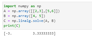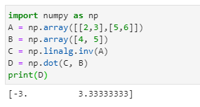 (1) np.linalg.solve , (2) np.linalg.inv (역행렬 활용), 두 가지 방법이 있습니다.