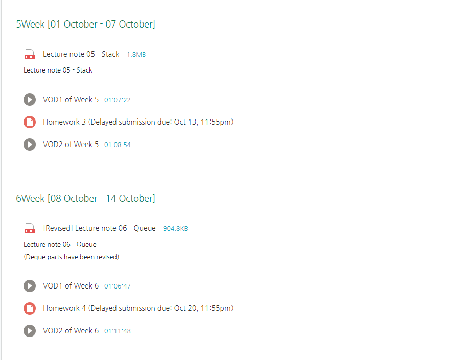 최근 SCSA 과정을 통해 자료구조를 다시 공부하면서, 학교다닐 때 배웠던 자료구조를 정리할 필요성을 느끼게 되었다. 자료구조 수업을 들을 당시에는 매 주 수업이 너무 빡세서, 정리고 뭐고 그냥 매 주 나간 진도 맞춰 복습하기에도 바빴다. 자료구조 수업을 맡으신 교수님이 학교에 새로 부임하신 열정 넘치시는 교수님이셔서, 매 주 코딩 과제가 있었고 - 그 과제를 3번 안내면 F (fail)를 주신다고 하셨다. 실제로 16주 수업에 연휴이나 중간기말 기간 2~3주를 제외하고 10번 이상의 과제가 있었다. 과제를 내기만 하면 되는 것이냐? 그것도 아니었다. 과제를 내주실 때 2~3문제를 주시는데, 채점해서 30점 이상 받아야 1회 제출로 쳐주신다. 과제를 다 내고도 점수를 받지 못하면 제출되지 않은 것으로 매겨진다. 자료구조 수업을 듣는 동안 주말의 반 이상은 자료구조 과제하느라 보낸 것 같다. (교수님 저 다른 수업도 듣는데요 ㅠㅠㅠㅠㅠ) 당시 참 힘들었지만, 덕분에 SCSA 과정에서 자료구조를 다시 배울 때 훨씬 친숙하고 쉽게 느껴진다는 장점이 있다.