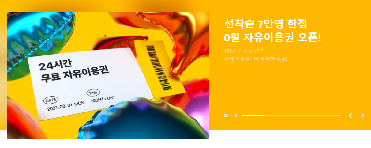 3월 1일 하루동안, 무료로 인기 컨텐츠를 들을 수 있어요. 며칠 전부터 사전신청을 해두었습니다. (이거 들어보려고 처음으로 회원가입했어요 ㅎㅎ) 3월 1일 오후 2시에 자유이용권이 오픈되어 자유이용권을 수강해보았습니다!