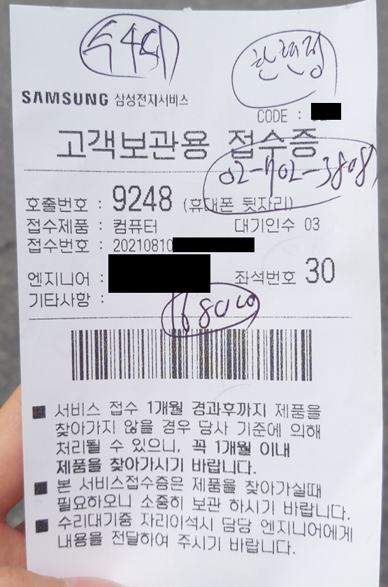 노트북으로 할 일도 있고 기쁜 마음에 바로 찾으러 갔다. 수리 완료된 제품을 찾으러 갈 때는 기다릴 필요 없이, 바로 엔지니어님을 찾아가면 주신다. 제품이 정상 작동되는지 확인하고 비용을 지불하고 새 것이 된 노트북을 찾아왔다~!~!