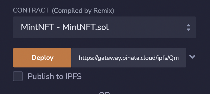 pinata에 업로드한 경로를 baseUri로 넣어준다. 이 때 맨 끝에 / 는 빼줘야 한다.