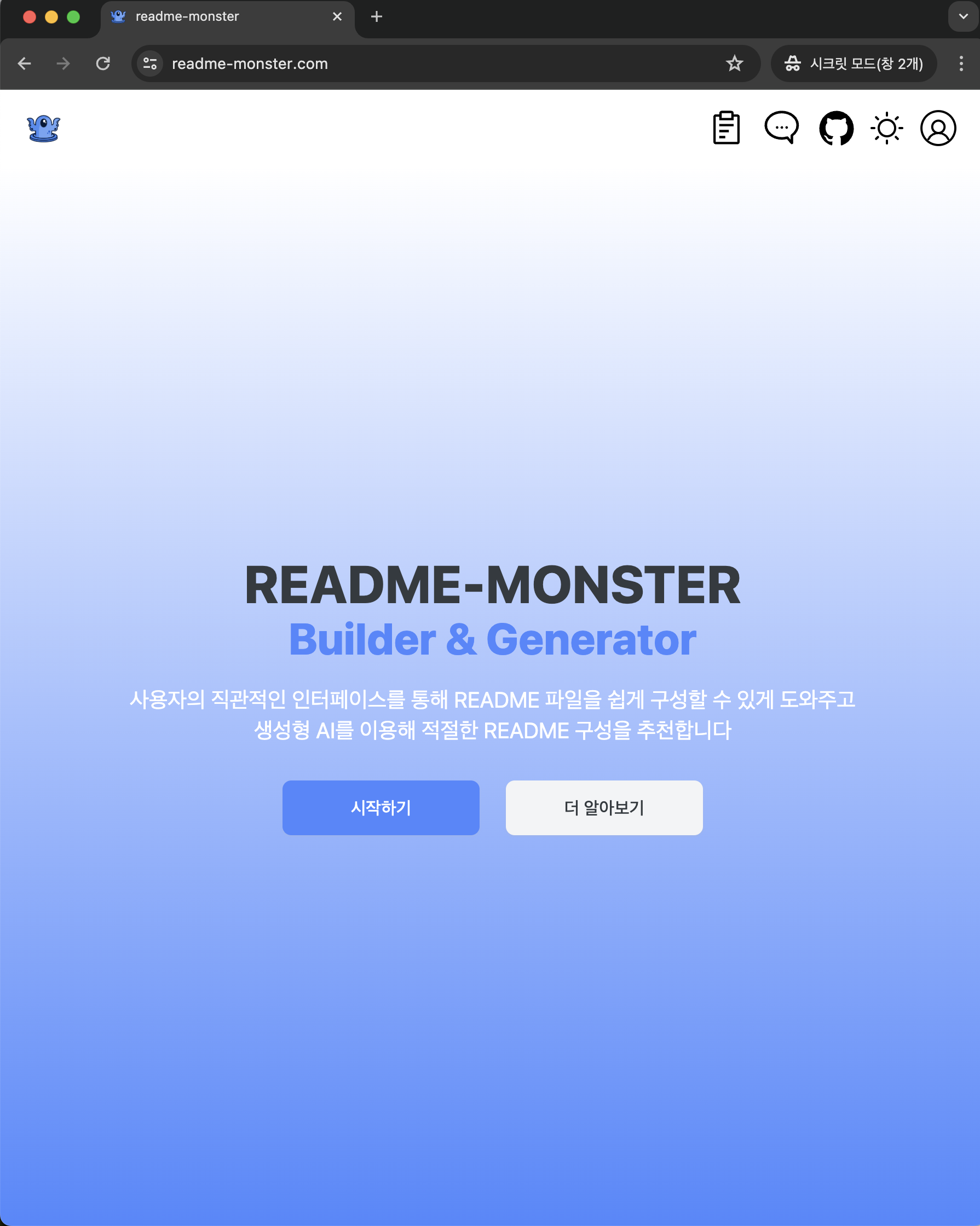 * AI 를 활용해서 README 작성을 편하게 도와주는, README-MONSTER 서비스