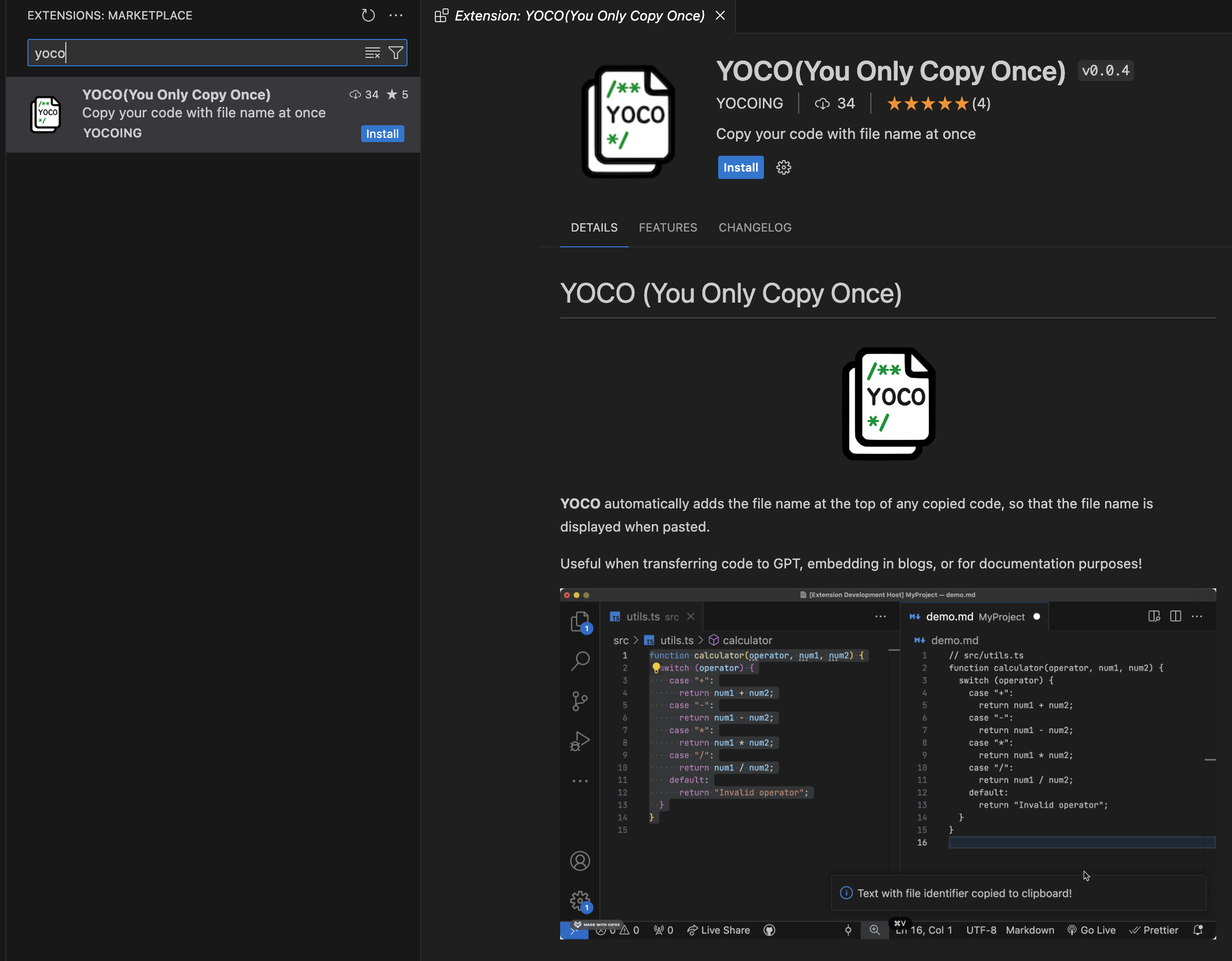 * 블로깅 할 때 복붙을 편하게 도와주는 vs code 익스텐션, yoco