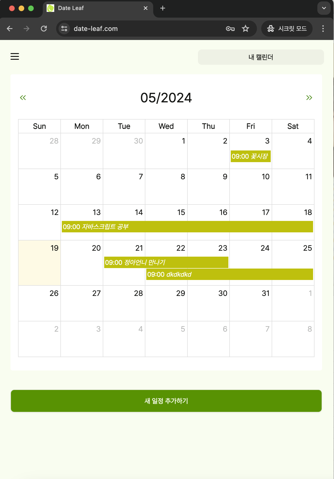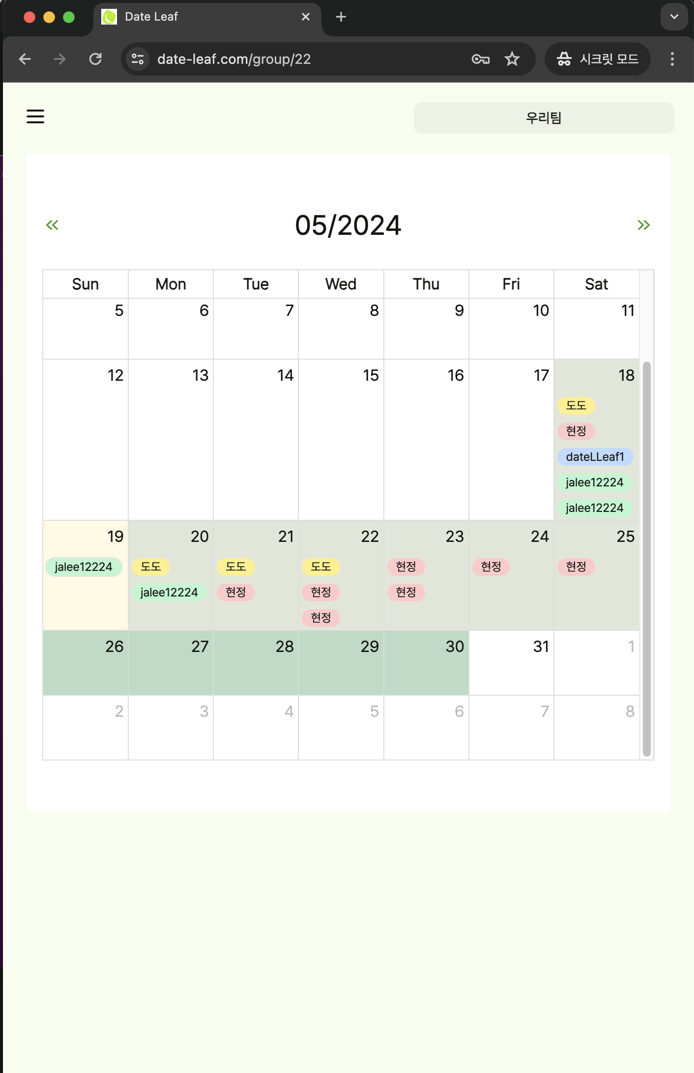 첫번째로 우리팀이 만든 Date leaf 사이트!
