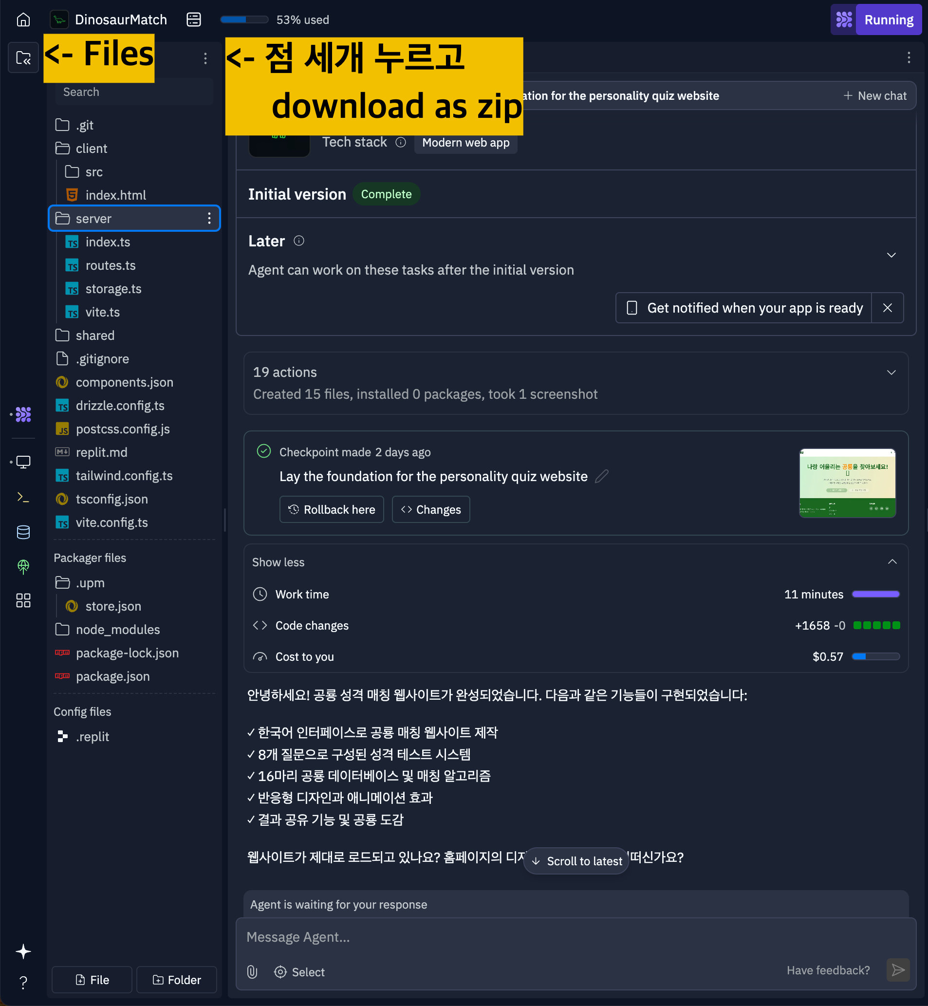 나중에 보니 이런 사소한 수정사항은 Agent에게 요청하기는 좀 아까운 것 같습니다. (돈과 시간이 더 나가는 느낌)