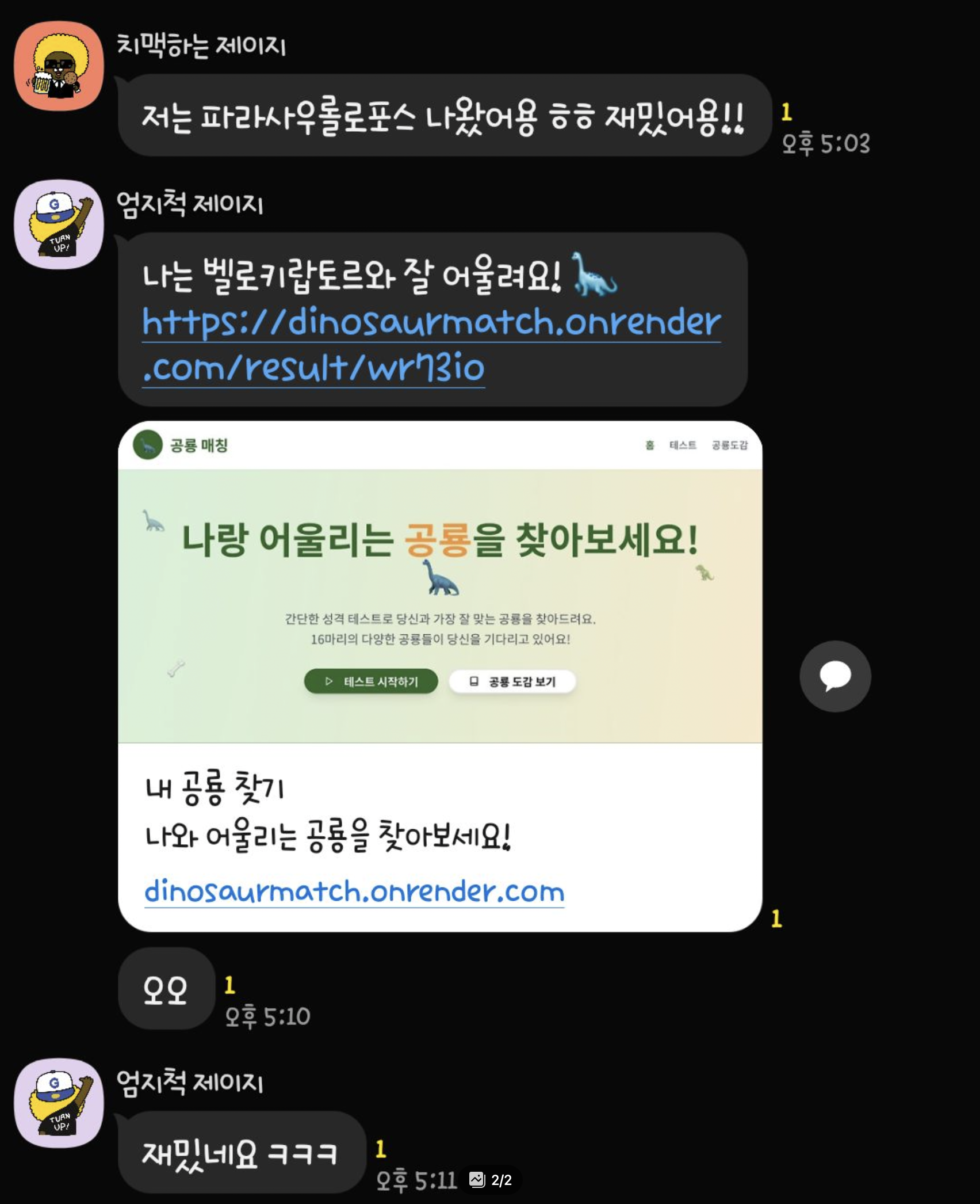이렇게 해서 바이브 코딩으로 "공룡 매칭" 서비스 하나를 뚝닥 만들어보았습니다.