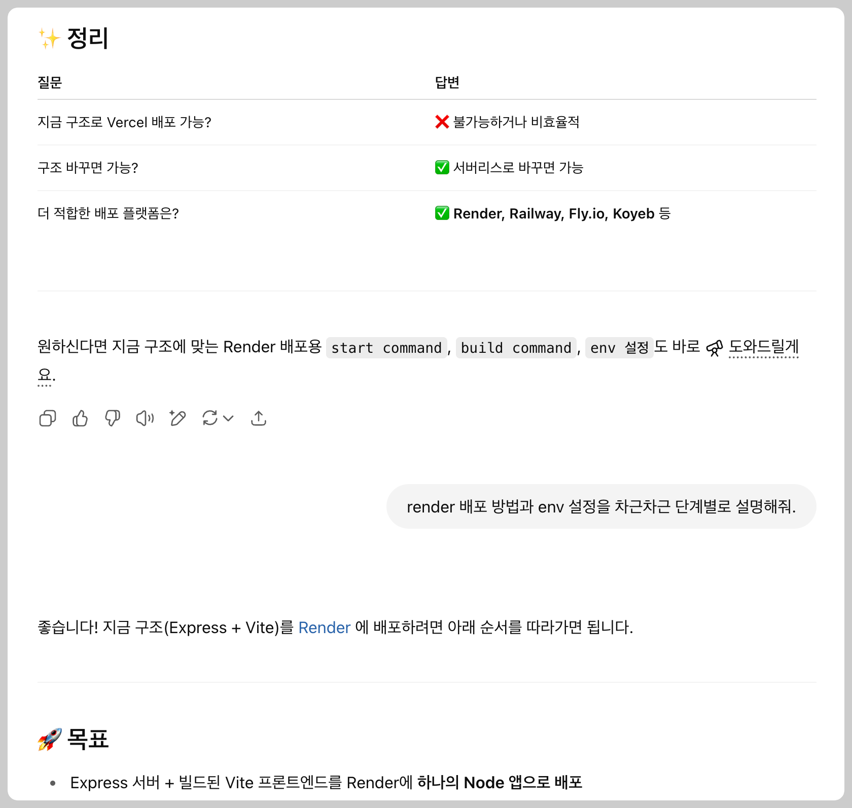 render 라는 서비스는 처음 써봤는데, 이것도 chat gpt 한테 물어봐서 알려준대로 한겁니다 ㅎㅎㅎ