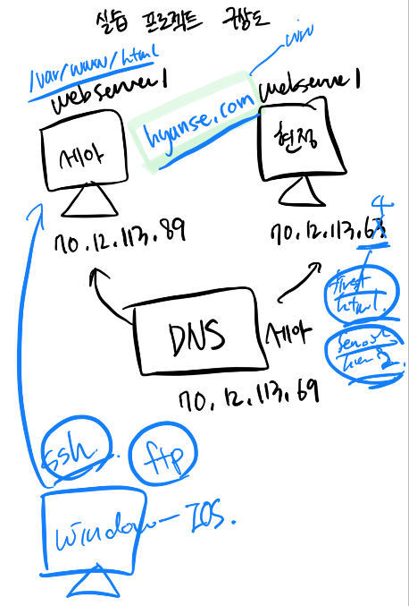 현정 컴퓨터에는 apache virtual host를 구성하여 /var/html/index.html 과 /var/html2/index.html 을 first.hyunse.com, second.hyunse.com 으로 정함.