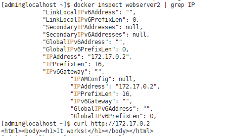 [admin@localhost ~]$ docker run -d --name webserver2 httpd:latest