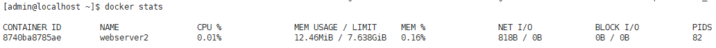 8740ba8785ae webserver2 0.01% 12.46MiB / 7.638GiB 0.16%