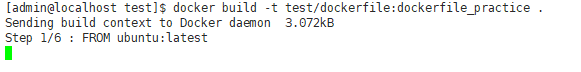 아까 dockerfile 을 만들었던 경로로 이동하여 아래와 같이 build 해준다. dockerfile 이 현재 위치에 있기 때문에 . 으로 PATH를 주었다.