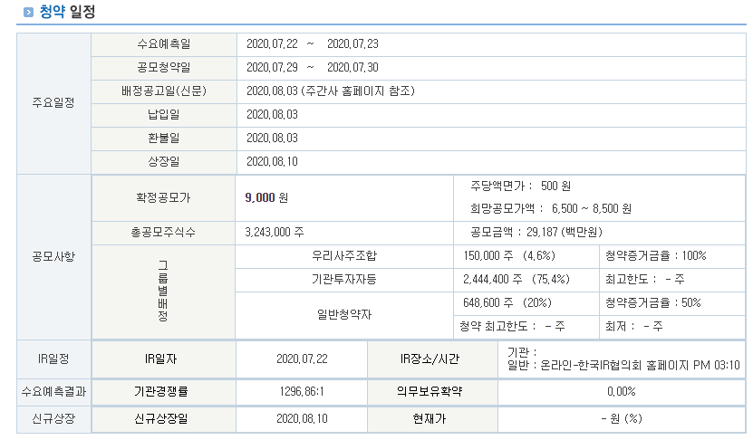 해당 사이트에서 간단한 기업 개요와 공모정보 등을 살펴볼 수 있다.