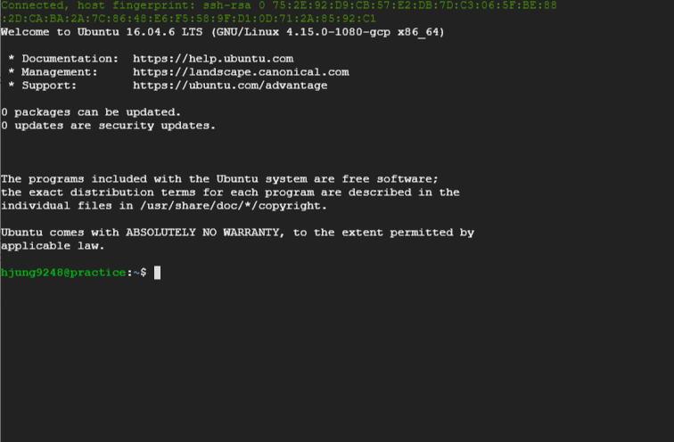 # 생성된 VM인스턴스 (클라우드환경의 컴퓨터!)에 접속합니다.