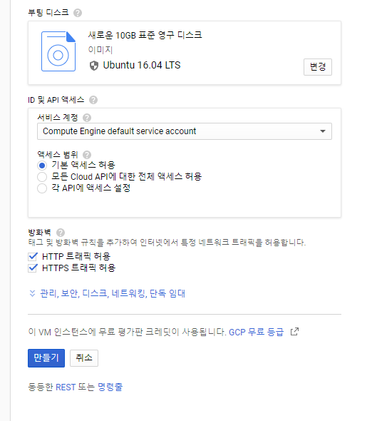 # 여기까지 하면 아래와 같이 VM 인스턴스가 생성됩니다.