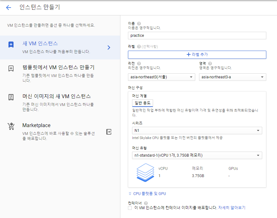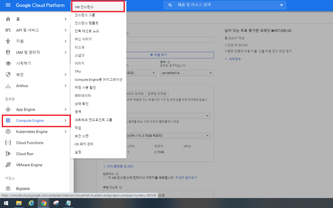 # Compute Engine - VM인스턴스를 생성합니다.