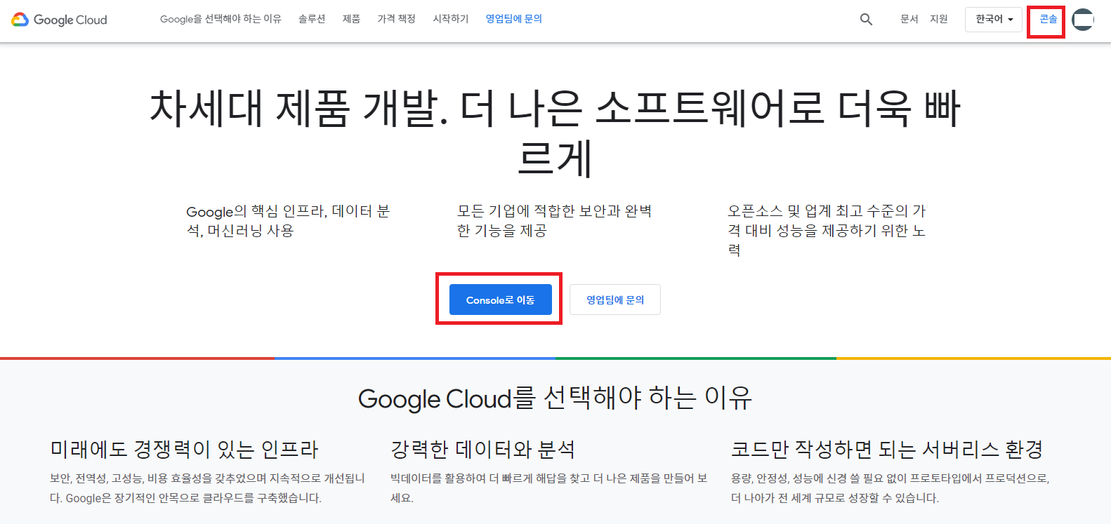 # GCP 를 구글에서 검색해서 접속한다. 여기에서 콘솔로 들어가줍니다.
