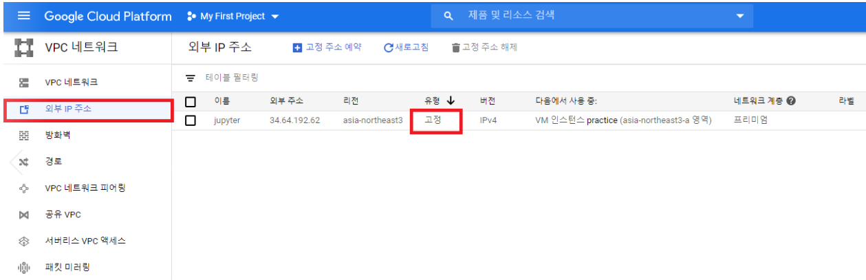 | GCP에서 VM인스턴스에 고정IP 설정하는법 (0) | 2020.08.11 |
