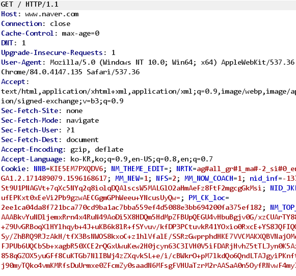 리소스 요청 패킷으로, GOOGLE에 메인 페이지 요청