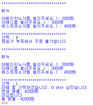 아메리카노 를 선택하셨습니다. 28 shot 남았습니다.